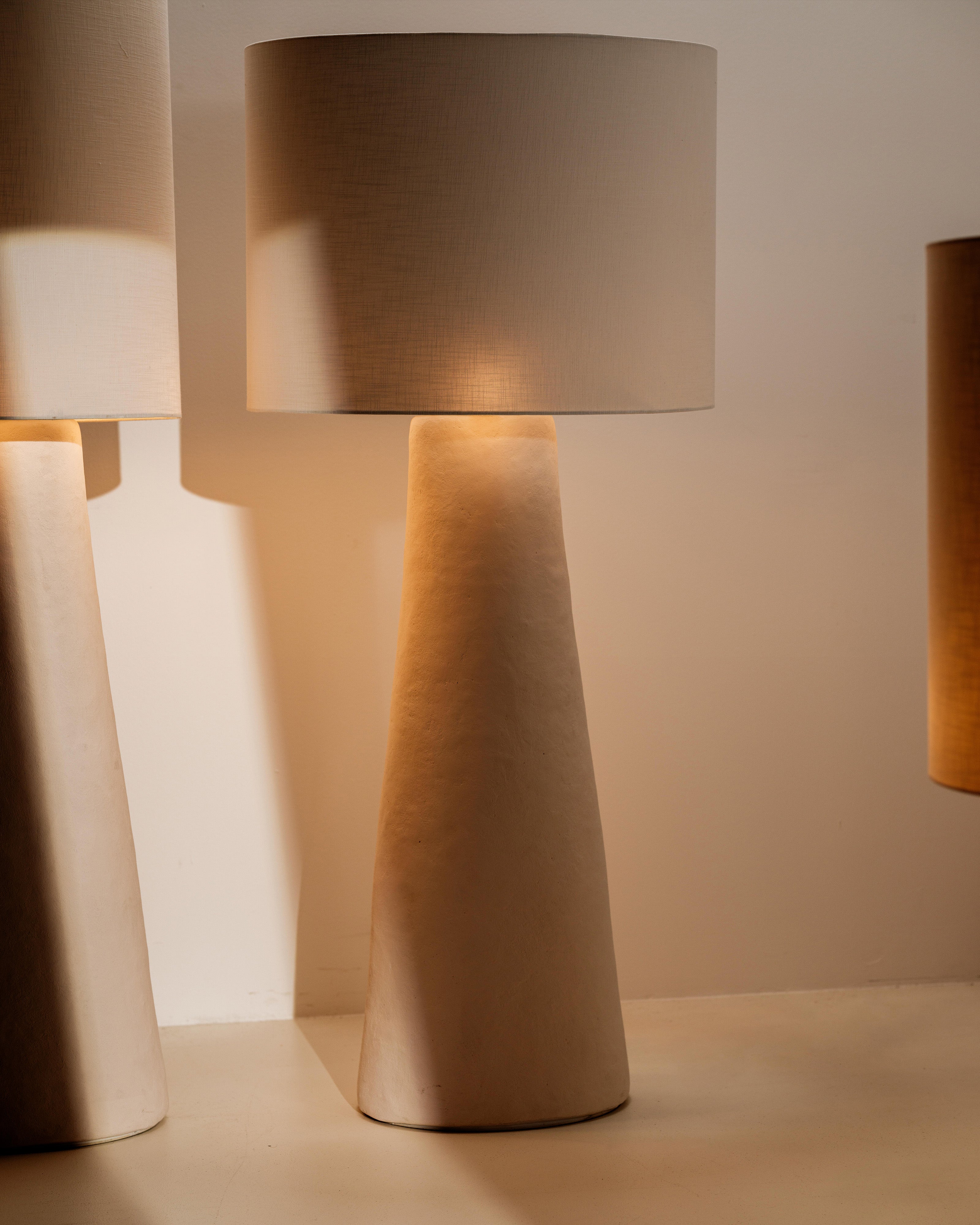 De collectie EARTH van in-house designer Marie Michielssen is een ode aan de prachtige texturen van aardse materialen. EARTH bevat lampen en vazen vervaardigd uit papier-mâché, een nederig maar veelzijdig materiaal met een prachtige, ruwe textuur. Nu wordt de collectie uitgebreid met twee lampen waarvan de basis uit het net vernoemde materiaal bestaat en de lampenkap van een al even natuurlijk linnen. Kortom, een en al EARTH