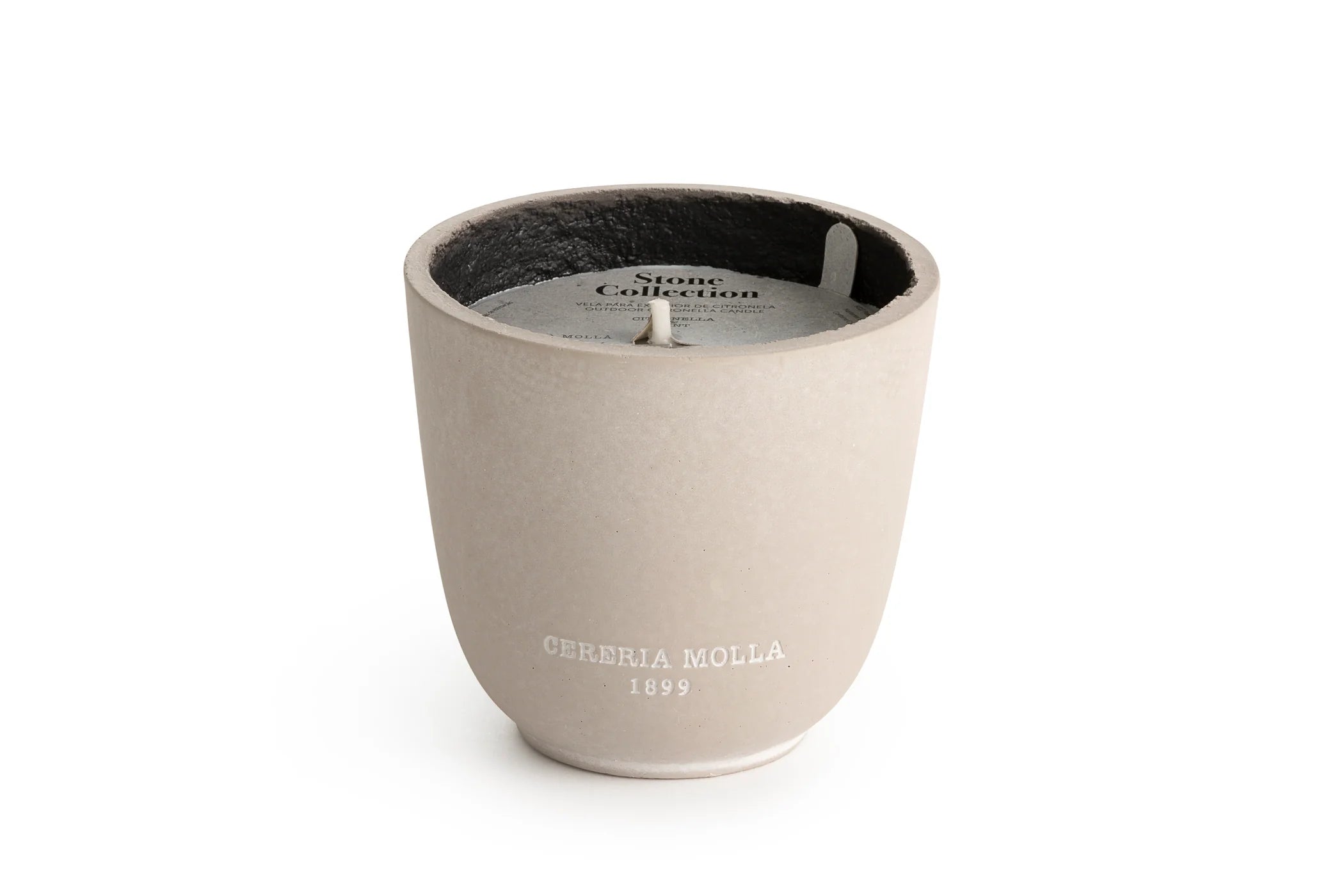 De Stone Collection Citronella & Mint kaars van Cereria Mollá 1899 is niet zomaar een kaars – het is een uniek stuk, ambachtelijk vervaardigd van de geur tot de cementen pot.