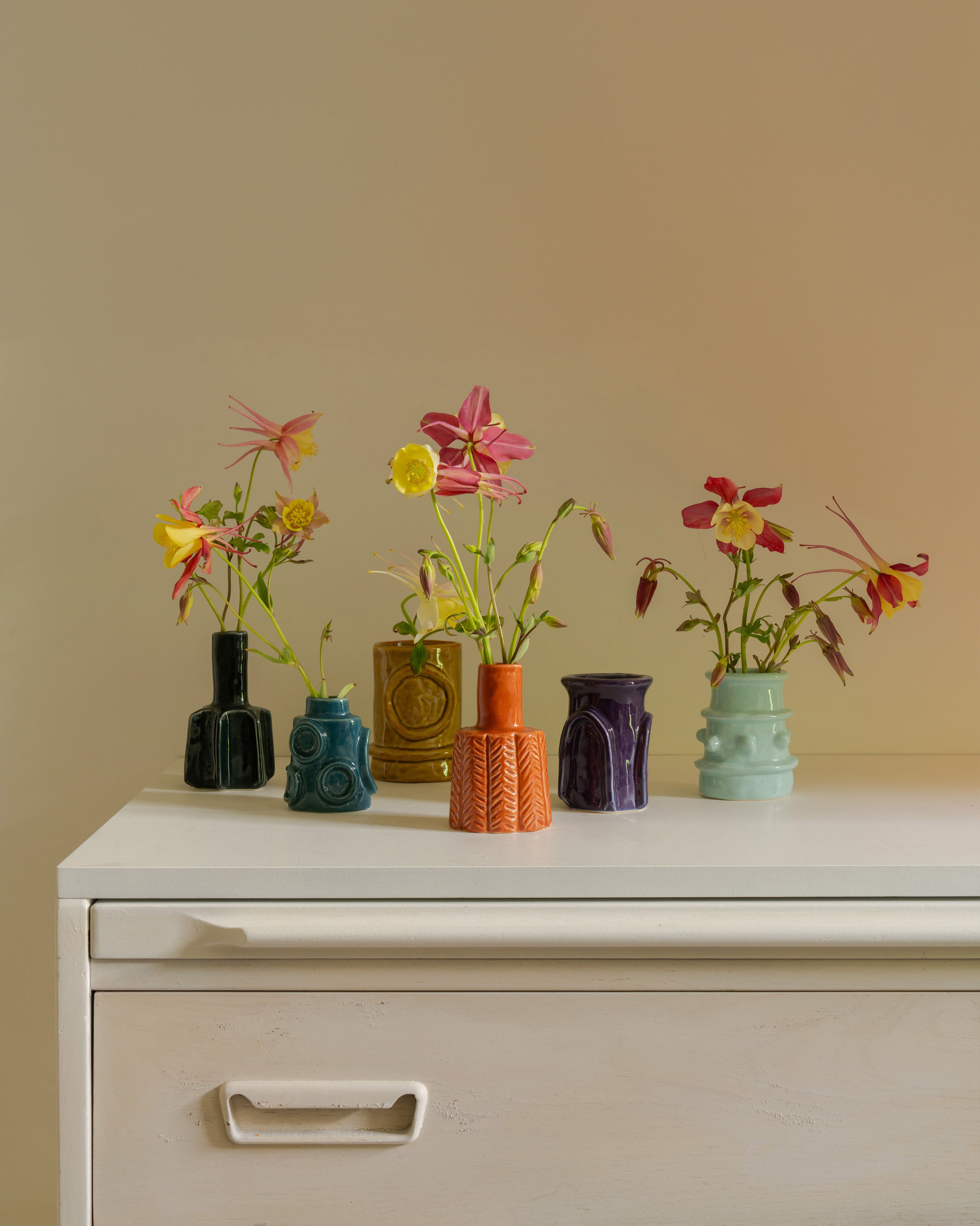 Uitgevoerd in off-white steengoed, mat aan de buitenkant, geglazuurd aan de binnenkant, vormen deze Molly vazen en potten een grafische eye-catcher in elk interieur.